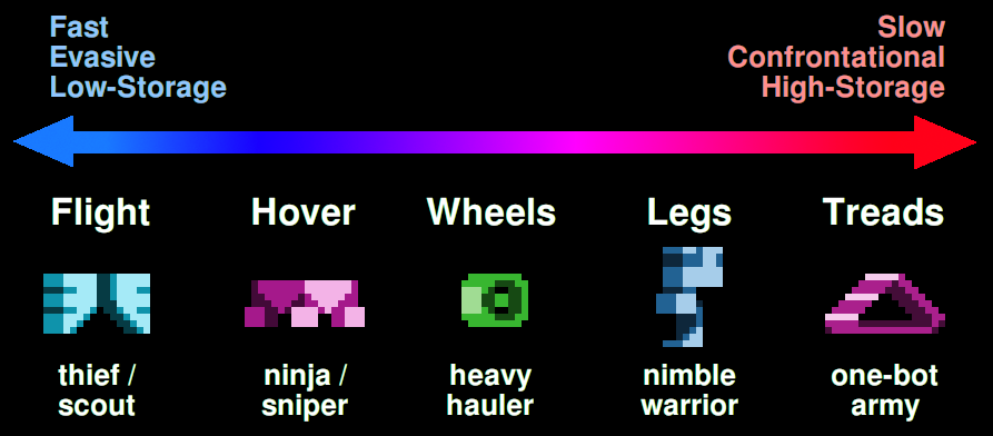 There are 5 different kinds of propulsion besides your built-in "core hover". Each one has benefits and drawbacks. Which ones you choose depends on your situation and your play style.