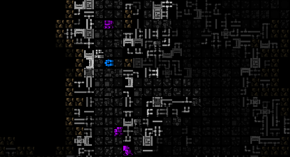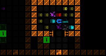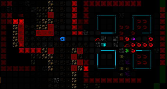 All of the interactive (colored) machines are available for hacking. This lets you do all kinds of fun stuff: download info, map the room, build parts, build robots, uncover traps, lower alert levels, etc. Machines display a number of randomized direct options you can try for. There are also manual commands you can enter with the 'z' option if you know any. Manual hacks can be discovered by exploring the game. Most will work for every game after you find them. Increase your chances of success by equipping hacking suites (offense) and system shields (defense), by enlisting Operators as allies, or by smashing Operators and stealing their data cores. Equipping silly numbers of hacking utilities lets you cause maximum mischief.