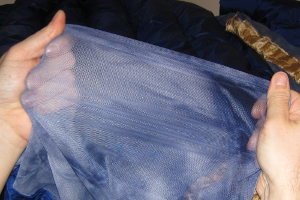 Stretch Mesh. (AKA Illusion, Ombre Mesh, Polymesh). This is a light, sheer, nylon stretch fabric with about 65% 2-way stretch. It is ideal for underquilts because it is the lightest stretch fabric and because we don't need 4-way stretch. It is also the cheapest option. Average Price: $6-$12 per yard.